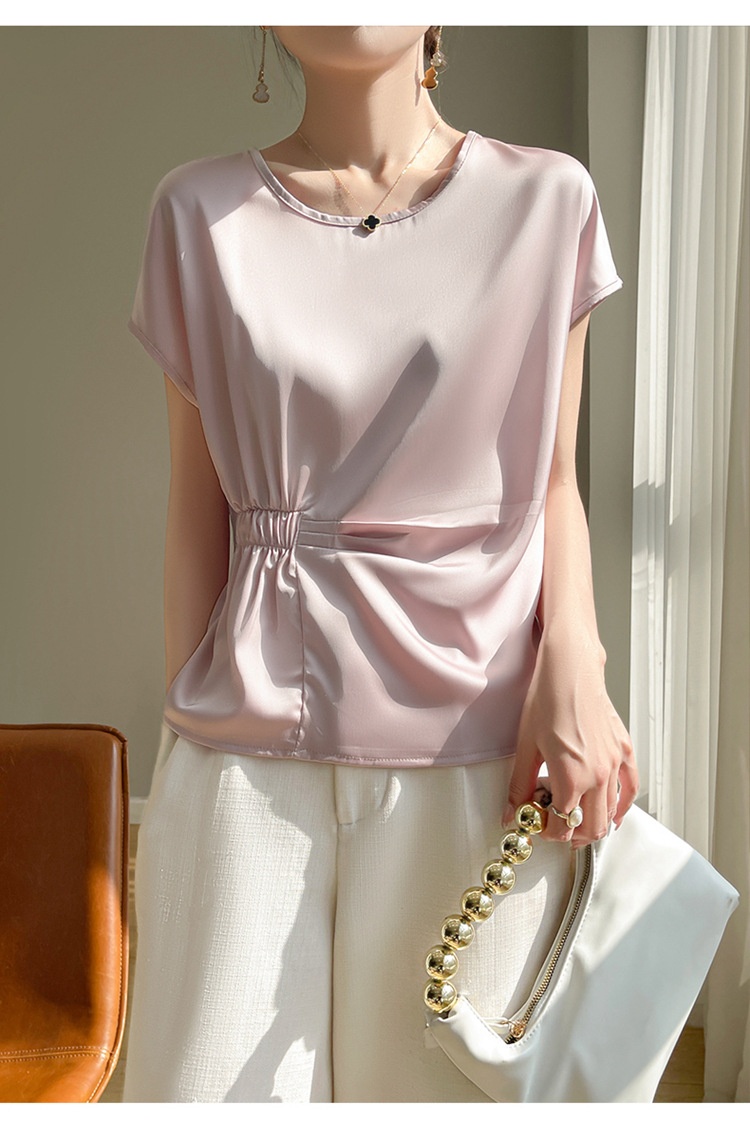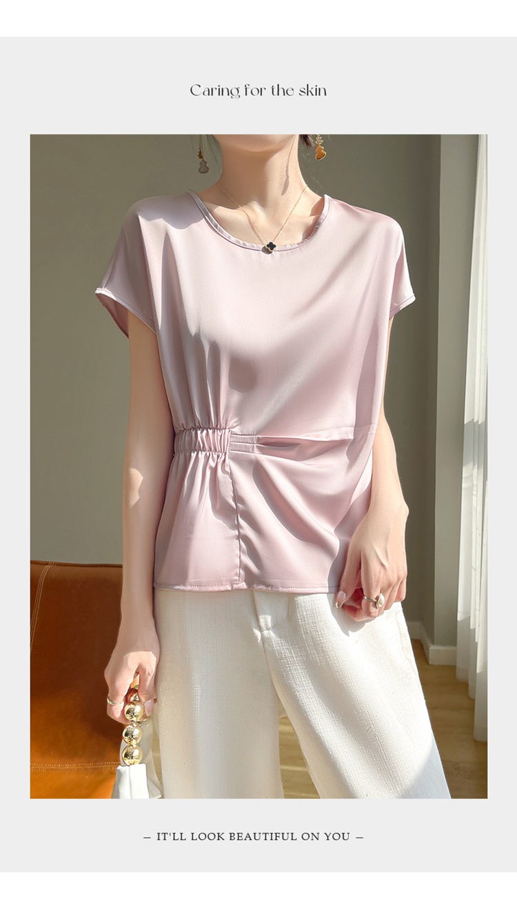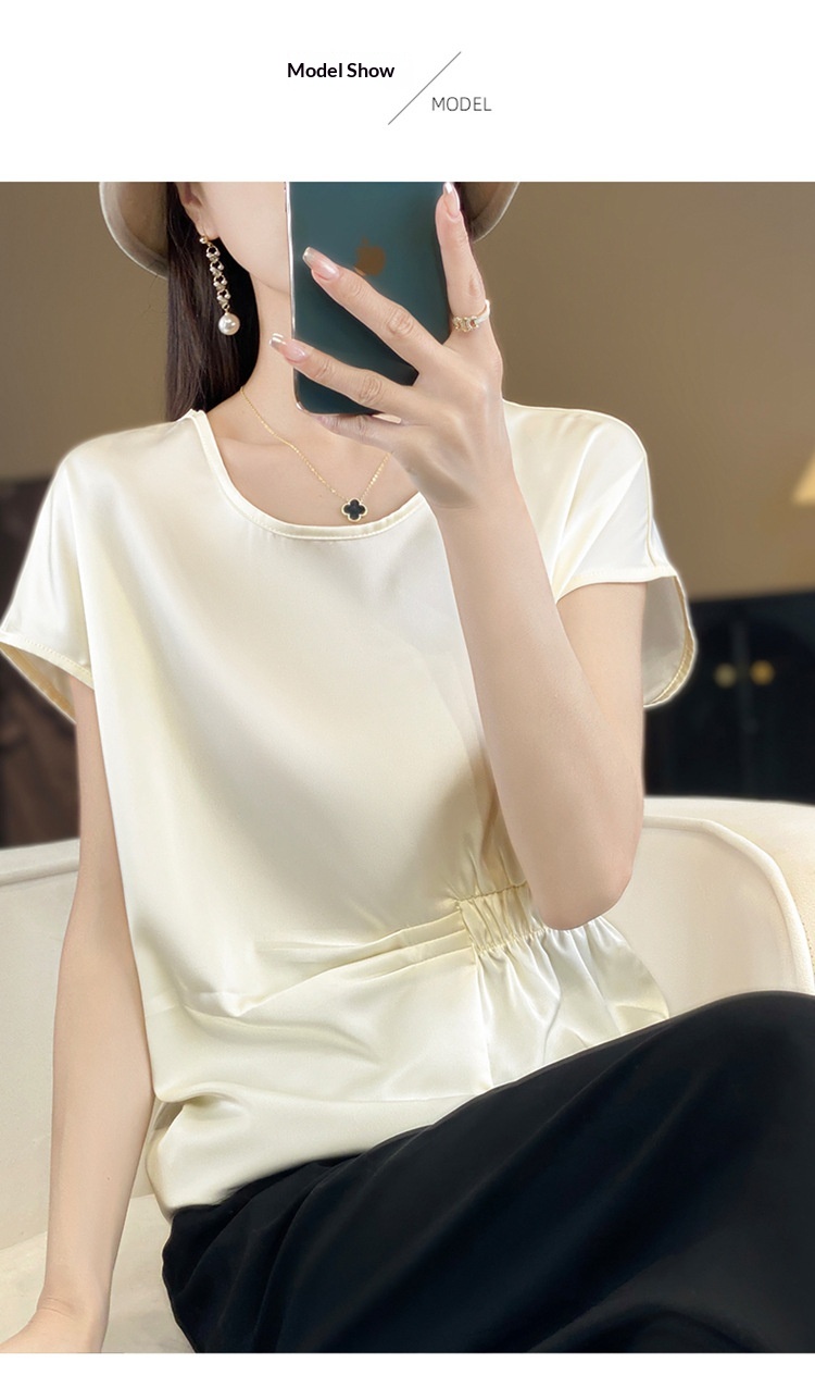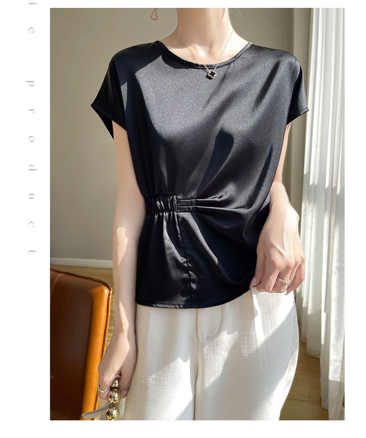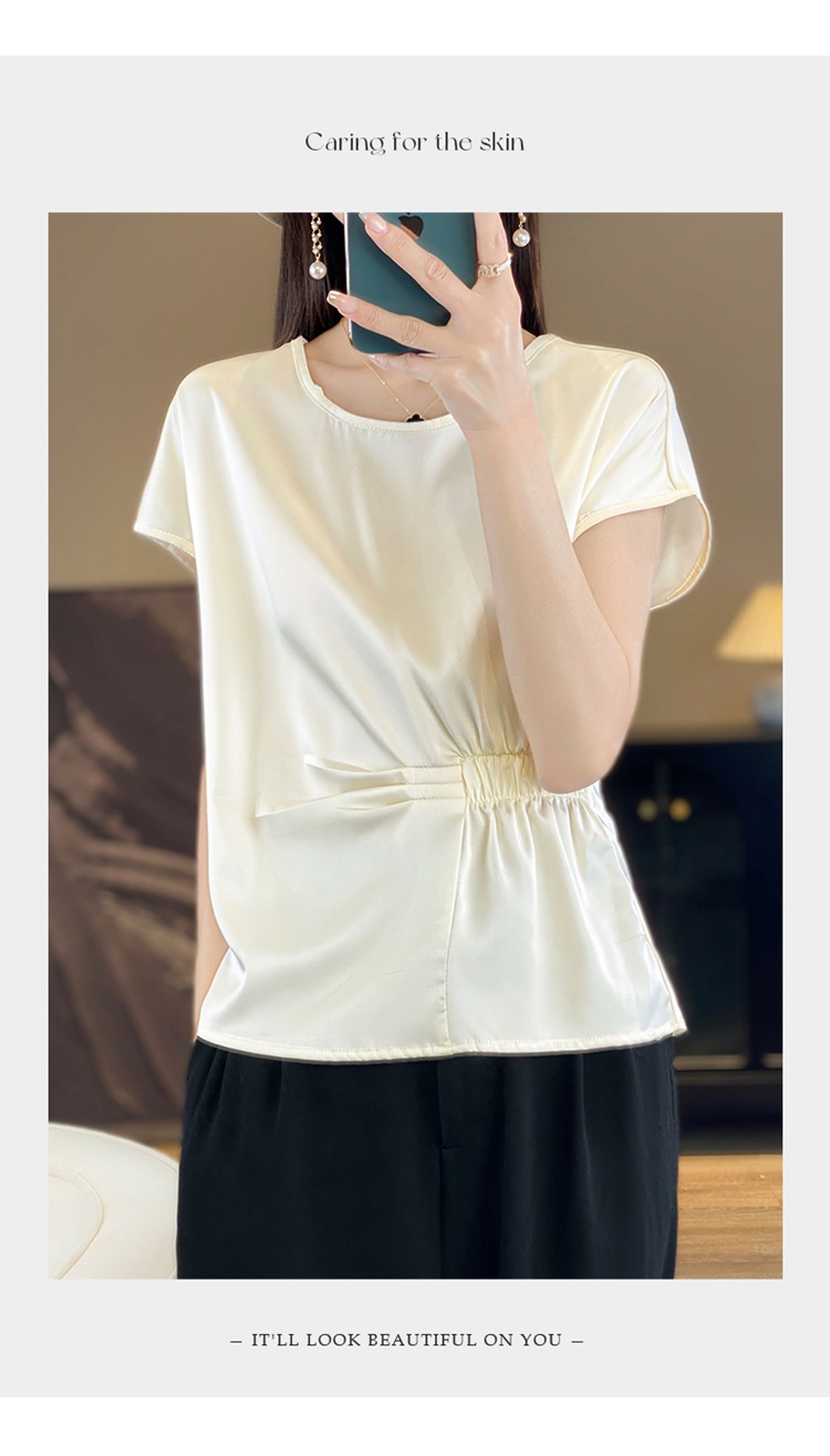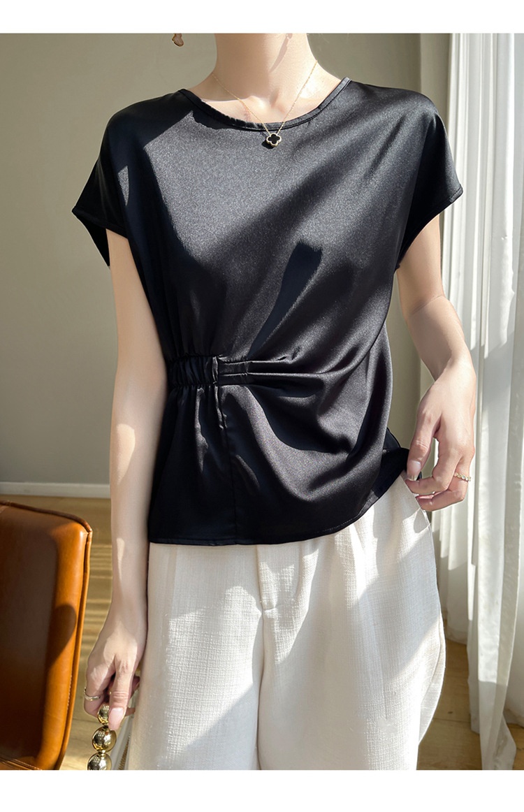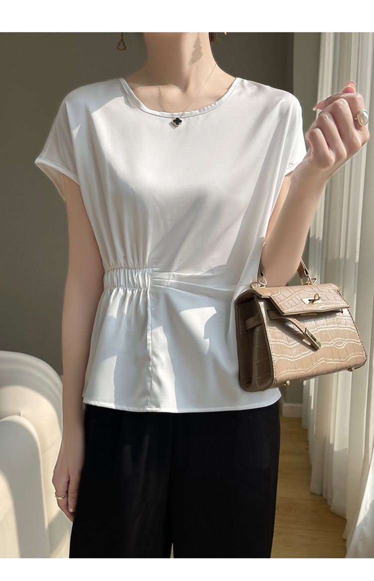 Crew-neck Simple All-match Drawstring Short-length Short-sleeve T-shirt