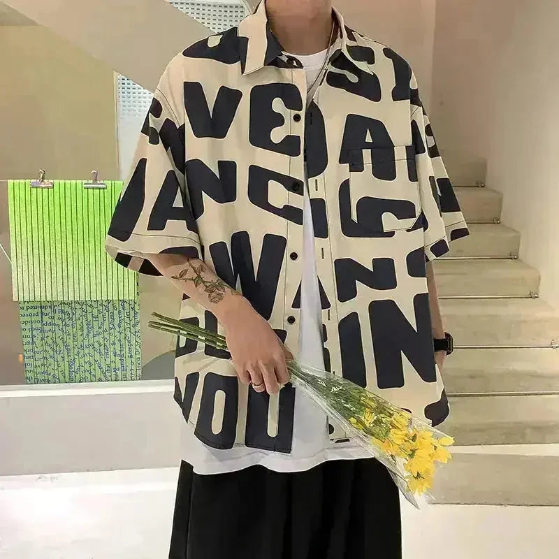 Explore American hip hop short sleeve shirt men''s thin loose shirt in summer offering what to wear to a summer hip hop concert, breathable short sleeve.