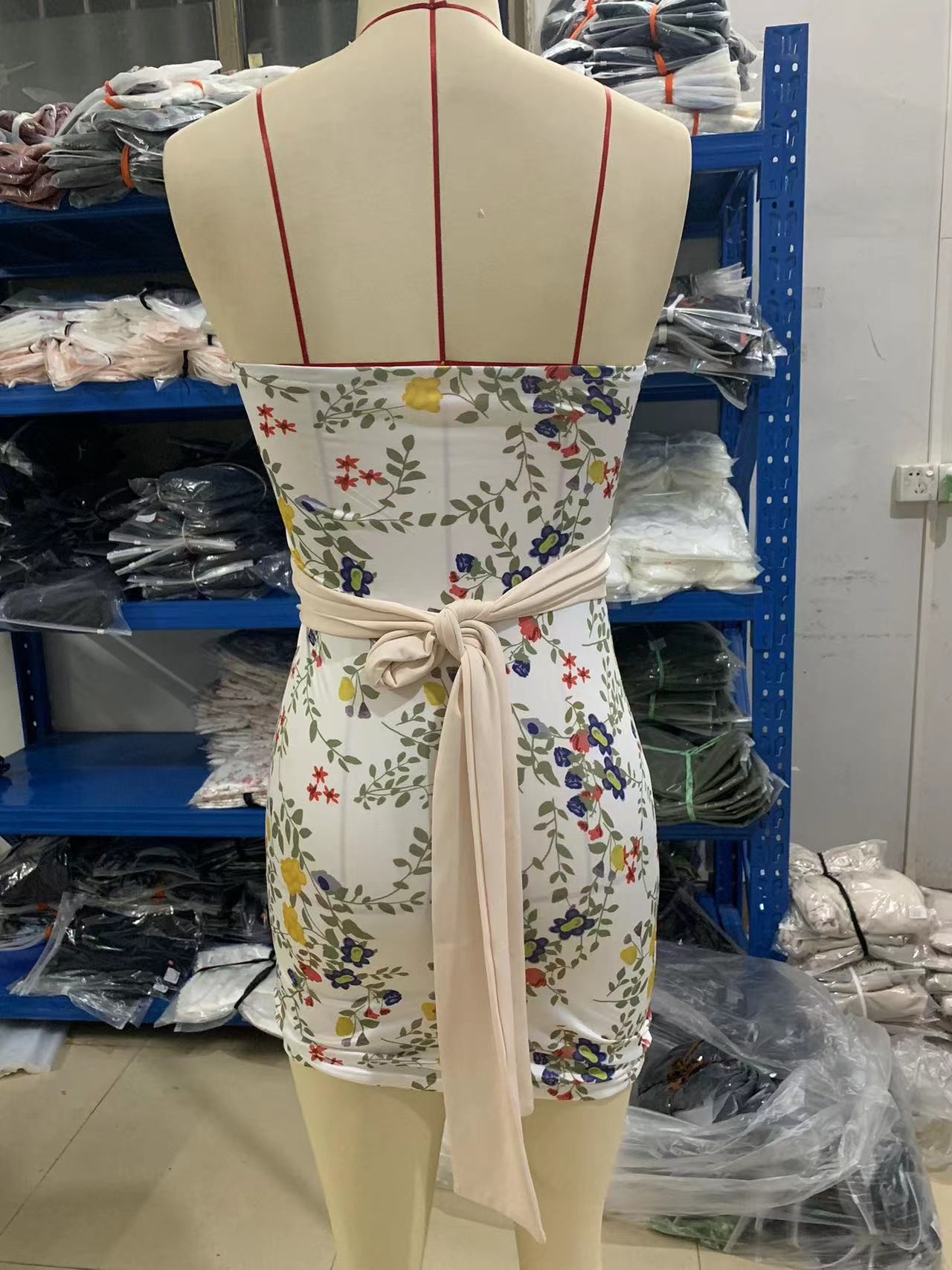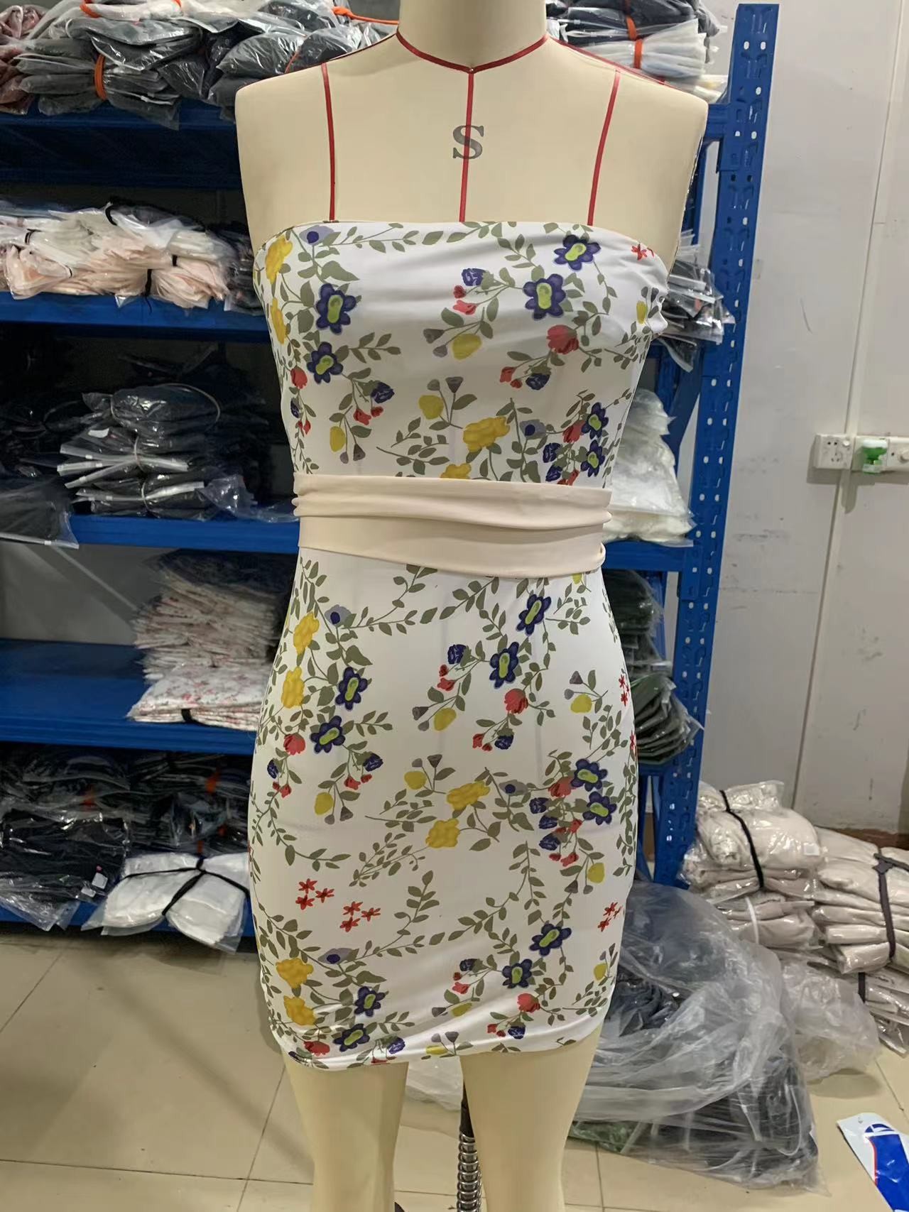 Floral Skinny Sheath Fashion Lace-up Tube Top Hot Jumpsuit Skirt