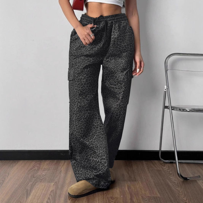 Printing Stylish Multi-pocket Street Overalls Loose-fit Tappered Trousers
