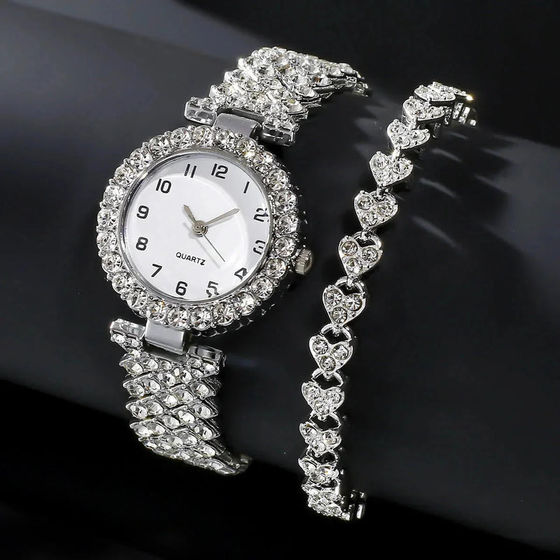 2-Piece Women's Watch & Bracelet Set - Luxury Fashion Jewelry Gift Set