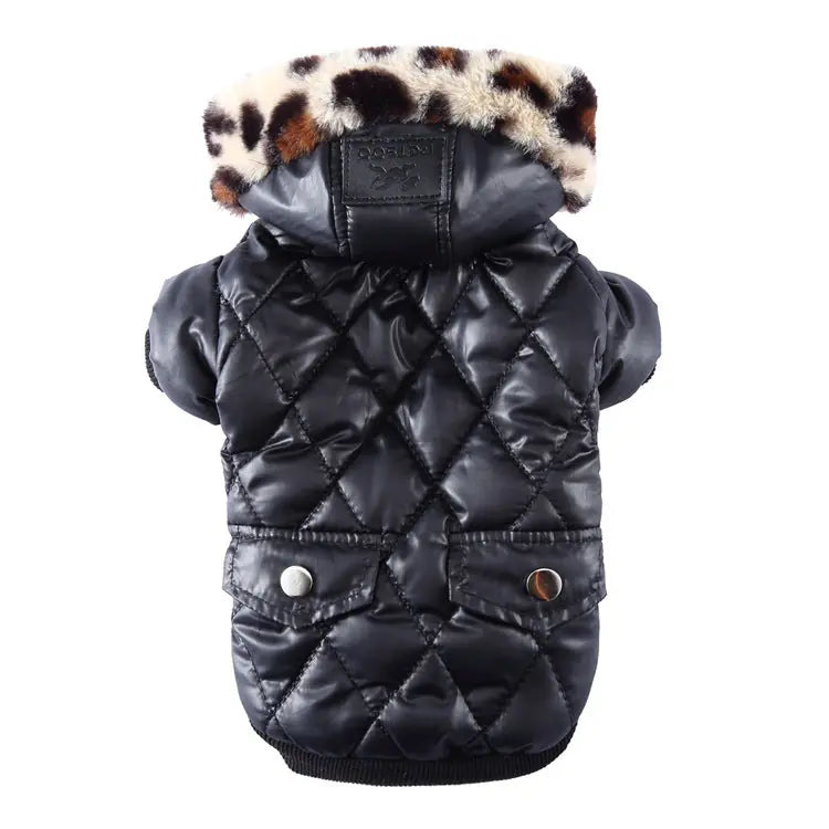 Keep your dog warm and stylish on winter walks with our durable fur collar coat. Made from soft, insulating materials, this coat offers full-body protection against the cold. It's designed for frequent use and holds up well to washing..