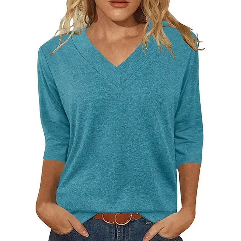 Discover your new favorite layering essentials with our versatile 3-Pack 3/4 Sleeve V-Neck T-Shirts! Designed for effortless fall styling, these casual tops feature a flattering V-neckline and comfortable 3/4 length sleeves that make them ideal for transitional weather. Made from ultra-soft, lightweight fabric, these tees serve as perfect base layers under cardigans and jackets or can be worn alone for a simple, chic look.
