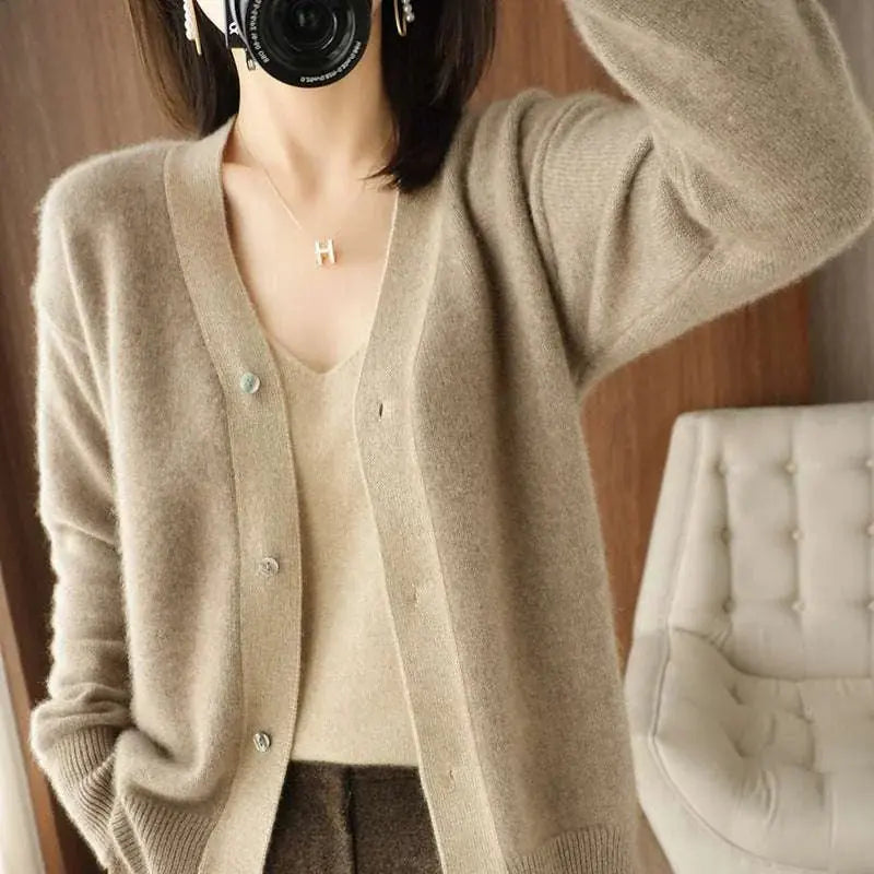 Colorblock V-neck Cashmere Knitted Cardigan Women