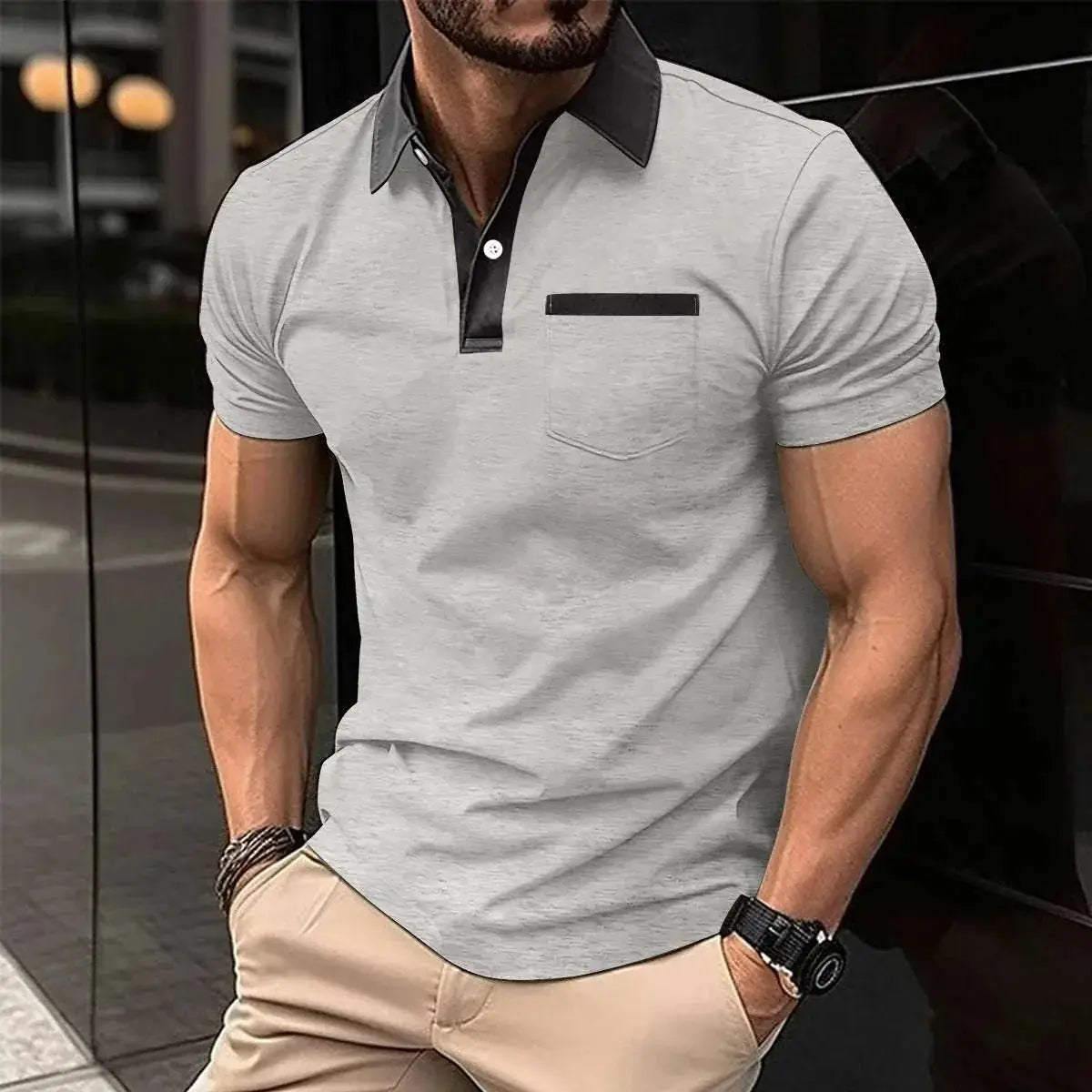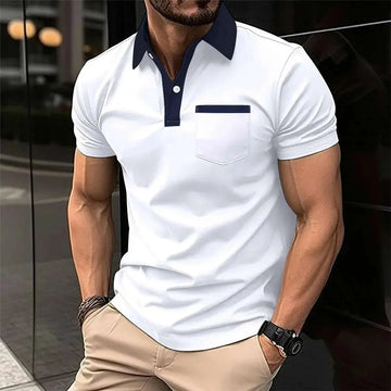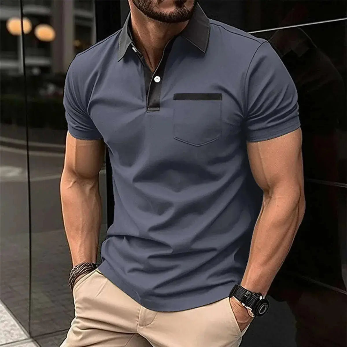 Refine your style with our Lapel Fashion Slim Fit Pocket Short-Sleeved T-Shirt Polo Shirt, a perfect blend of elegance and comfort. Made for modern men, this polo shirt features a stylish lapel collar, a tailored slim-fit design, and a convenient chest pocket for added functionality.