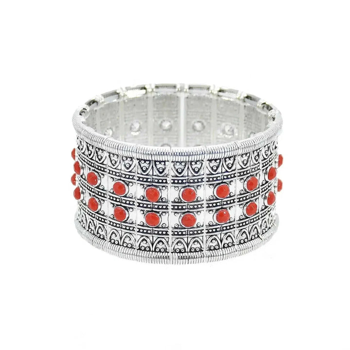 Tibetan Turquoise Bracelet - Boho Vintage Elastic Bangle Tribal Jewelry