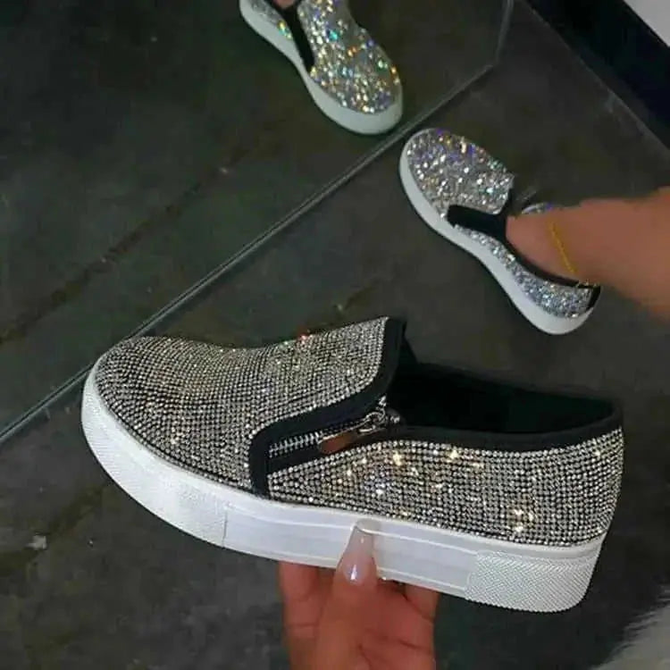 Discover our large size rhinestone flats, perfect for wide feet and offering effortless slip-on style for ultimate comfort and cute, casual charm.