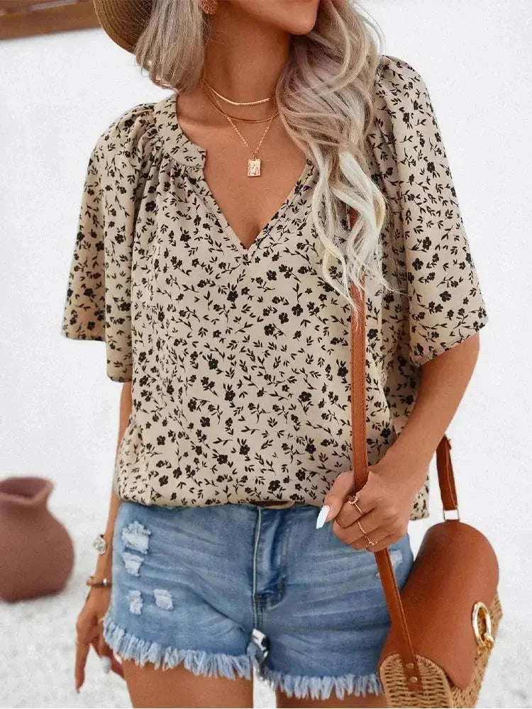 Our Plus Size Women's Shirts, All-Over Printed Short-Sleeved Stand-Up Collar Shirts, Women's Office Casual Tops is made from high-quality materials, offering durability and high performance. Designed to meet your needs, it provides an excellent user experience.