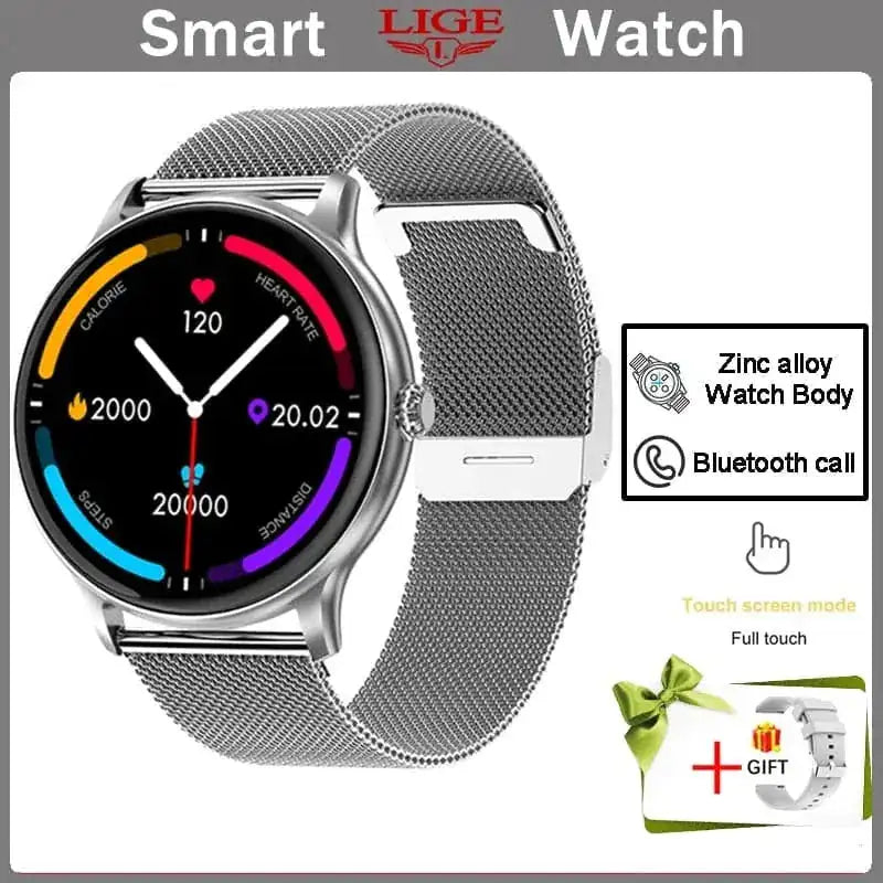 LIGE ladies smart watch - Bluetooth call fitness tracker with heart rate monitorSmart watch for women - blood oxygen monitor IP67 waterproofLadies fitness watch - 1.28 inch HD color touchscreen displayWomen's smart watch - multiple sports modes activity trackerBluetooth calling smartwatch - answer calls from your wristHeart rate blood pressure monitor watch - continuous health trackingWaterproof ladies smartwatch - IP67 professional waterproof ratingFitness tracker for women - sleep monitor pedometer calorie counterSmart watch features - message reminder music control weather forecastLadies watch with voice assistant - hands-free controlCustomizable watch faces - multiple dial optionsSmart watch app - iOS and Android compatibleWomen's fitness smartwatch - elegant design alloy caseLIGE smart watch packaging - gift ready presentationSmart watch specifications - technical details and featuresFitness watch health monitoring - comprehensive wellness trackingLadies smartwatch display - bright clear touchscreenSmart watch sports modes - track multiple activitiesWomen's watch with Bluetooth - wireless connectivityLIGE smartwatch features - complete functionality overviewSmart watch for ladies - stylish and functionalFitness tracker smartwatch - all-day activity monitoringLIGE ladies watch - premium quality smart wearable