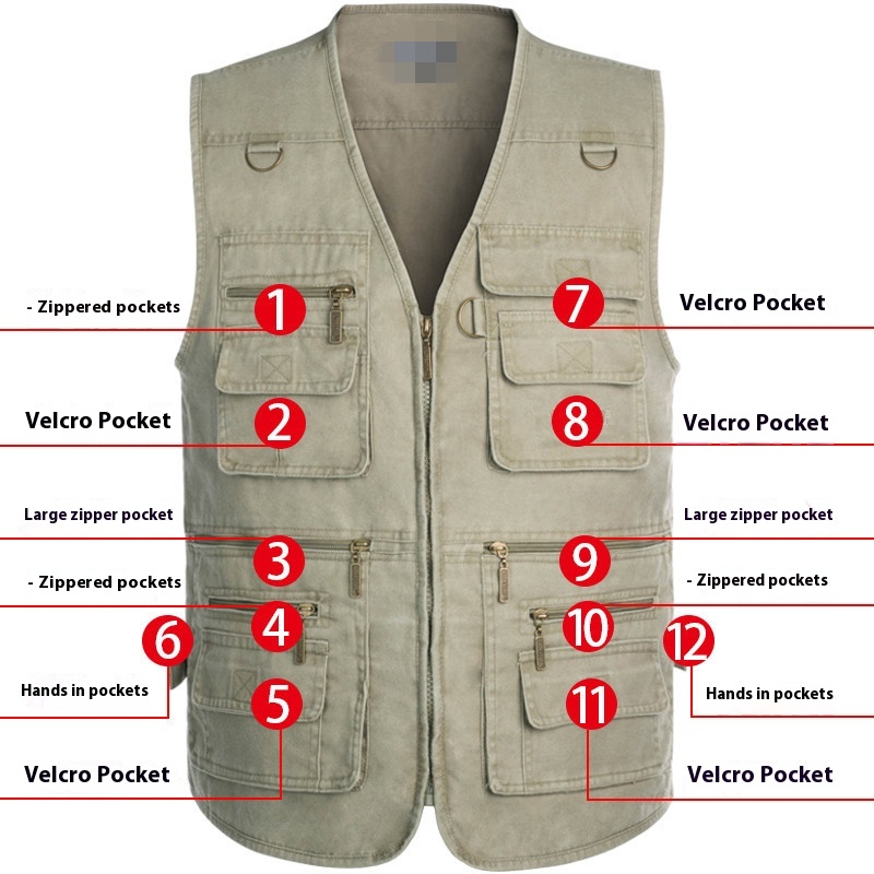 Men's Vest Middle-aged And Elderly Plus-sized Plus-sized Multi-pocket Fishing