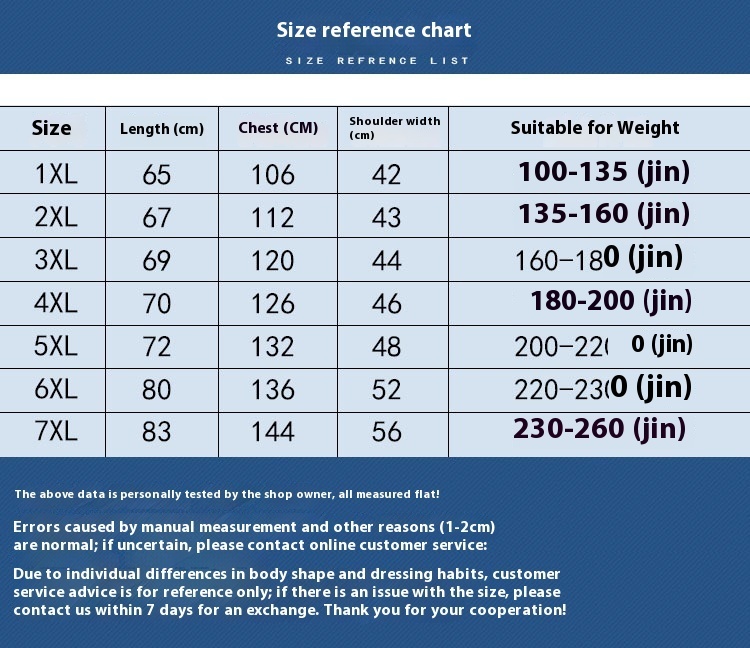 Size: XL,2XL,3XL,4XL,5XL,6XL,7XL